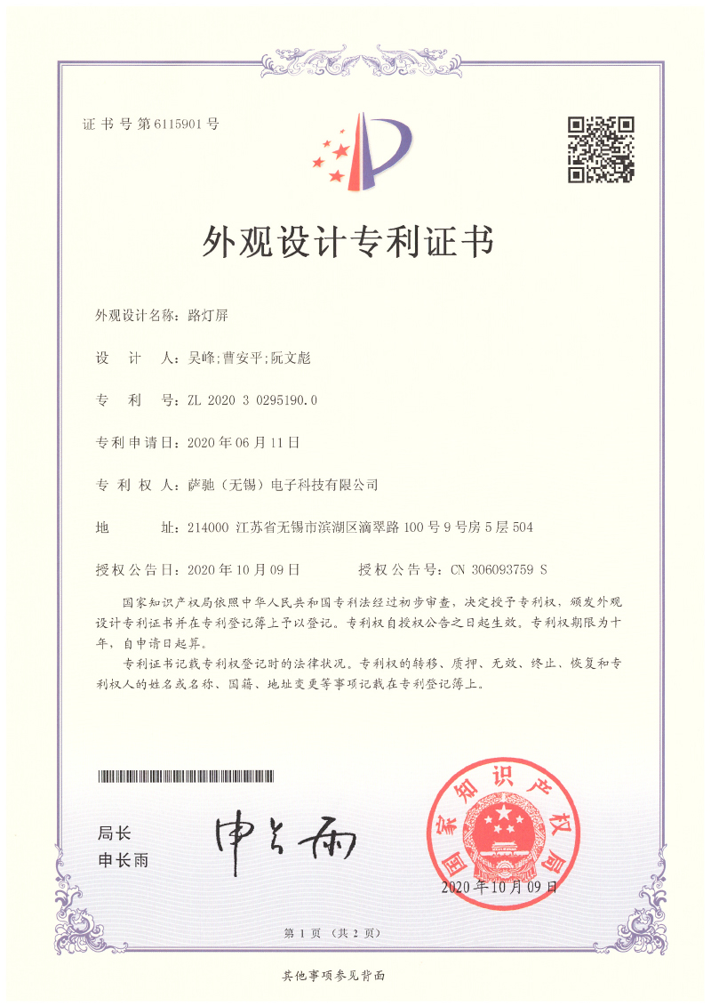 外观设计专利证书