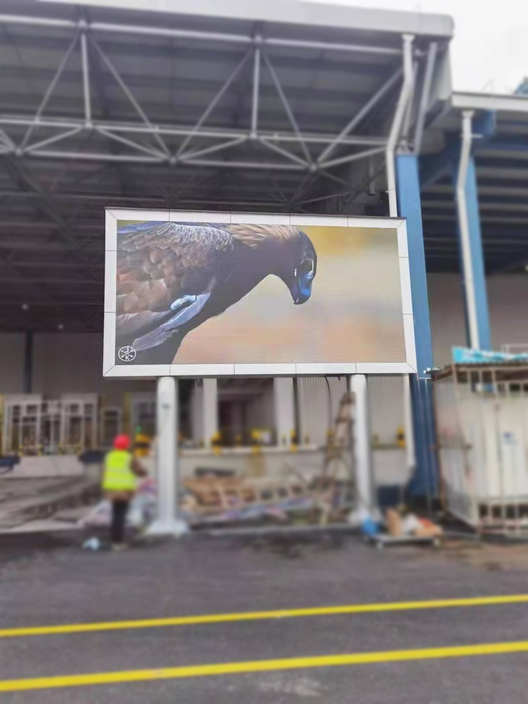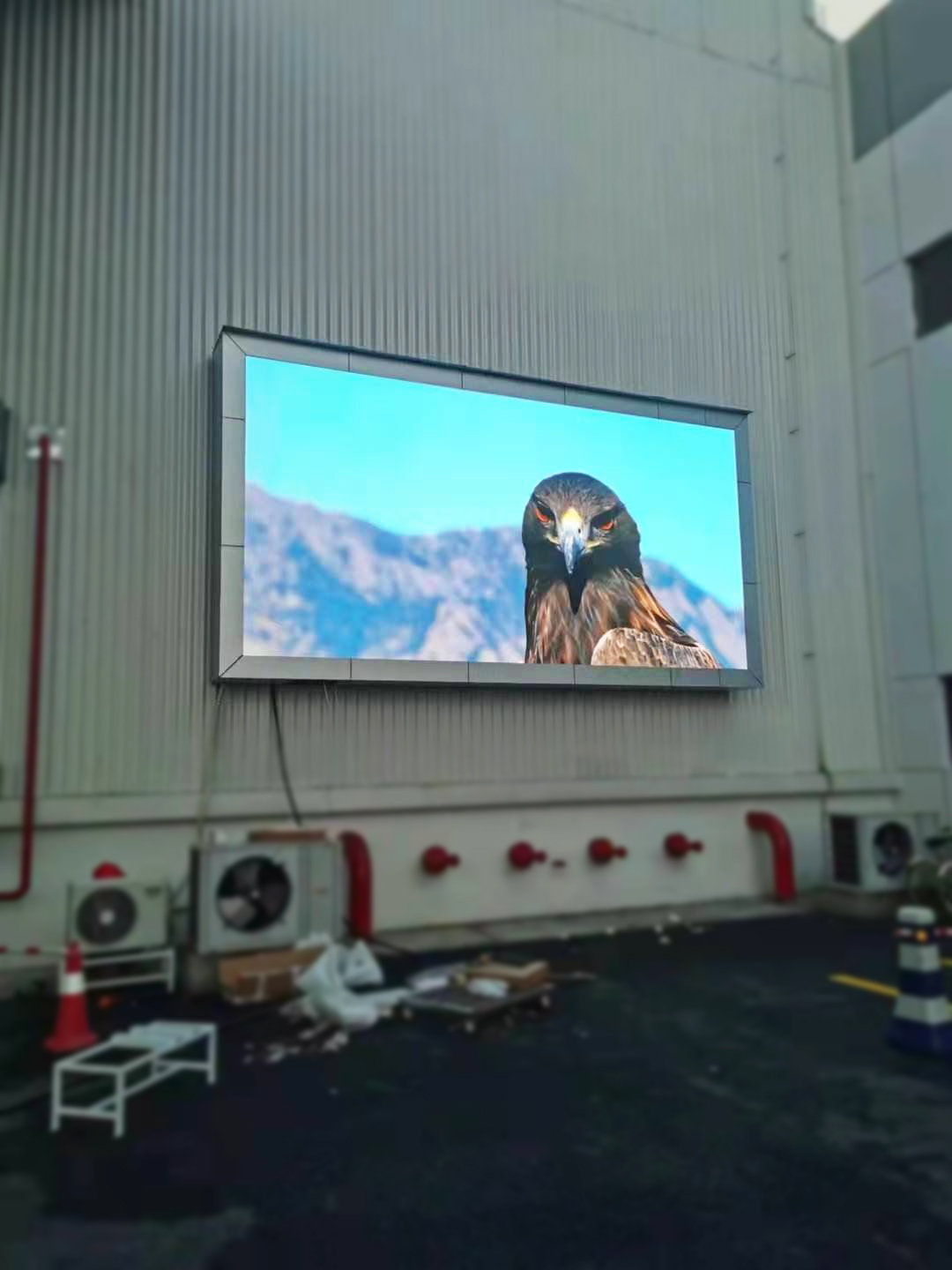 户外大屏案例——靠墙,双立柱